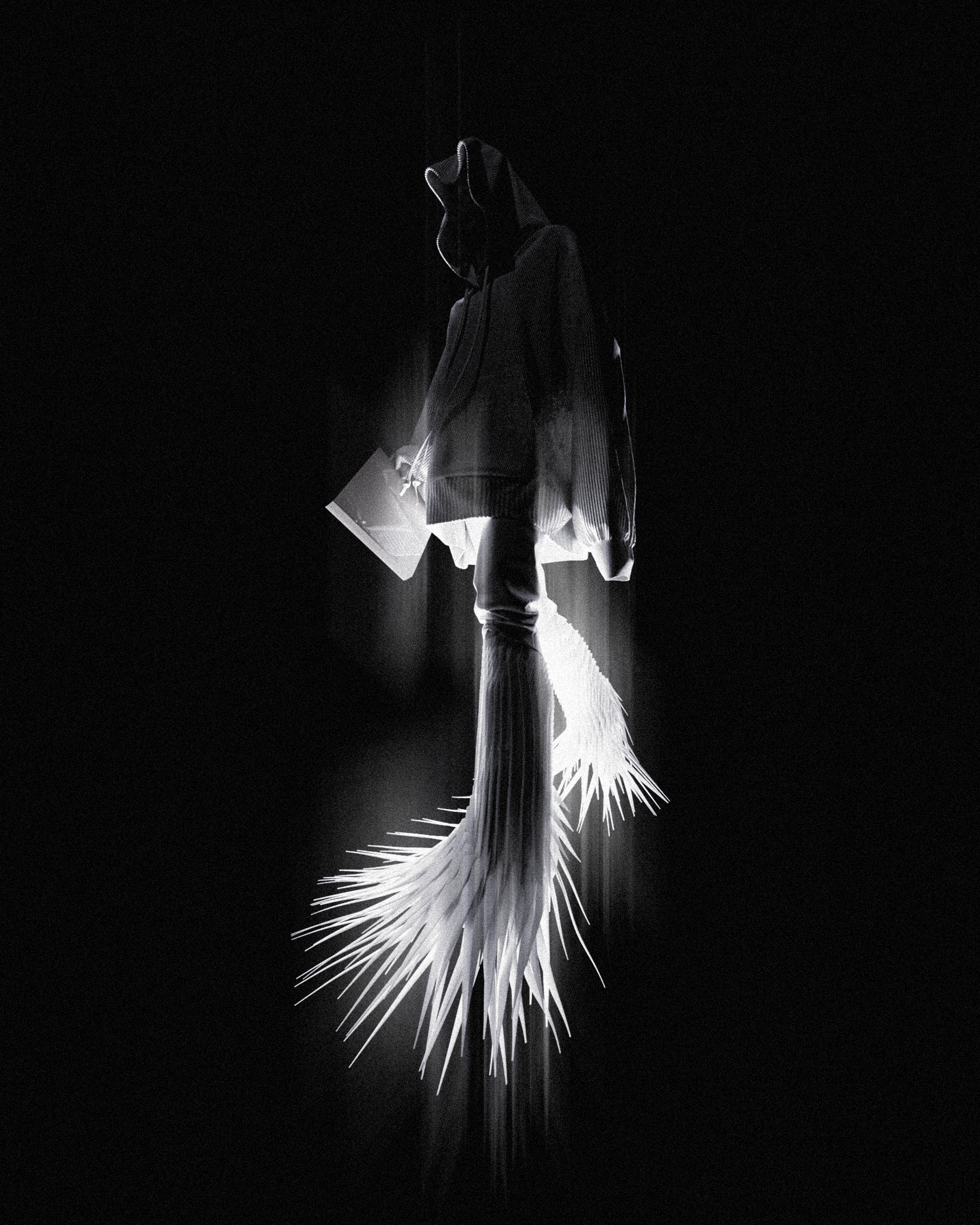 In contrast, the Rick Owens study investigates atmosphere and spatial narrative.